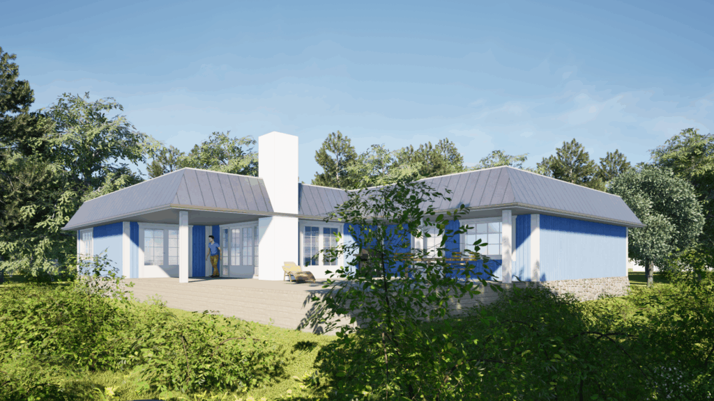 På en udfordrende grund, præget af tidligere oversvømmelser og lav beliggenhed, har vi skabt et sommerhus, der ikke blot imødekommer stedets fysiske betingelser – men som omfavner dem. Visionen har fra begyndelsen været at vende benspænd til kvalitet og forvandle en ellers overset grund til et sted med liv, udsyn og arkitektonisk tyngde.